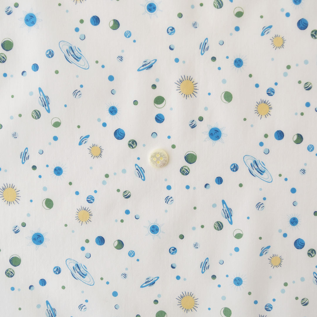 宇宙をテーマにしたキュートなカンバセーショナルプリントで、「オリオン」の対としてスモールスケールで描かれました。広大な宇宙空間に広がる太陽や月、惑星がまるで魔法の空に散りばめられた真珠のようで、私たちを銀河系発見の旅へと連れ出してくれます。