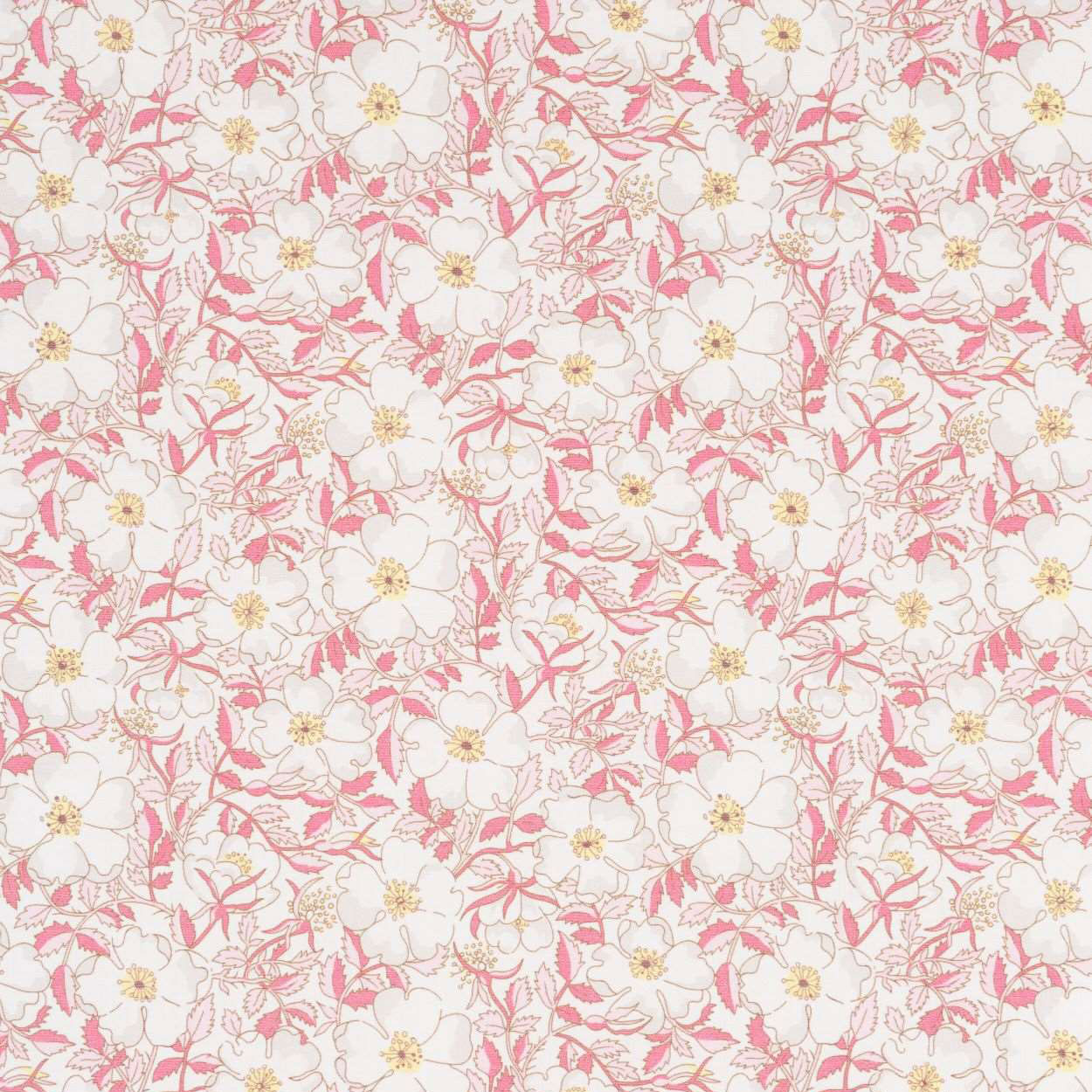 元々は1986年にハンドペイントされた柄で、満開の野生のイヌバラが葉のライン上に描かれています。
