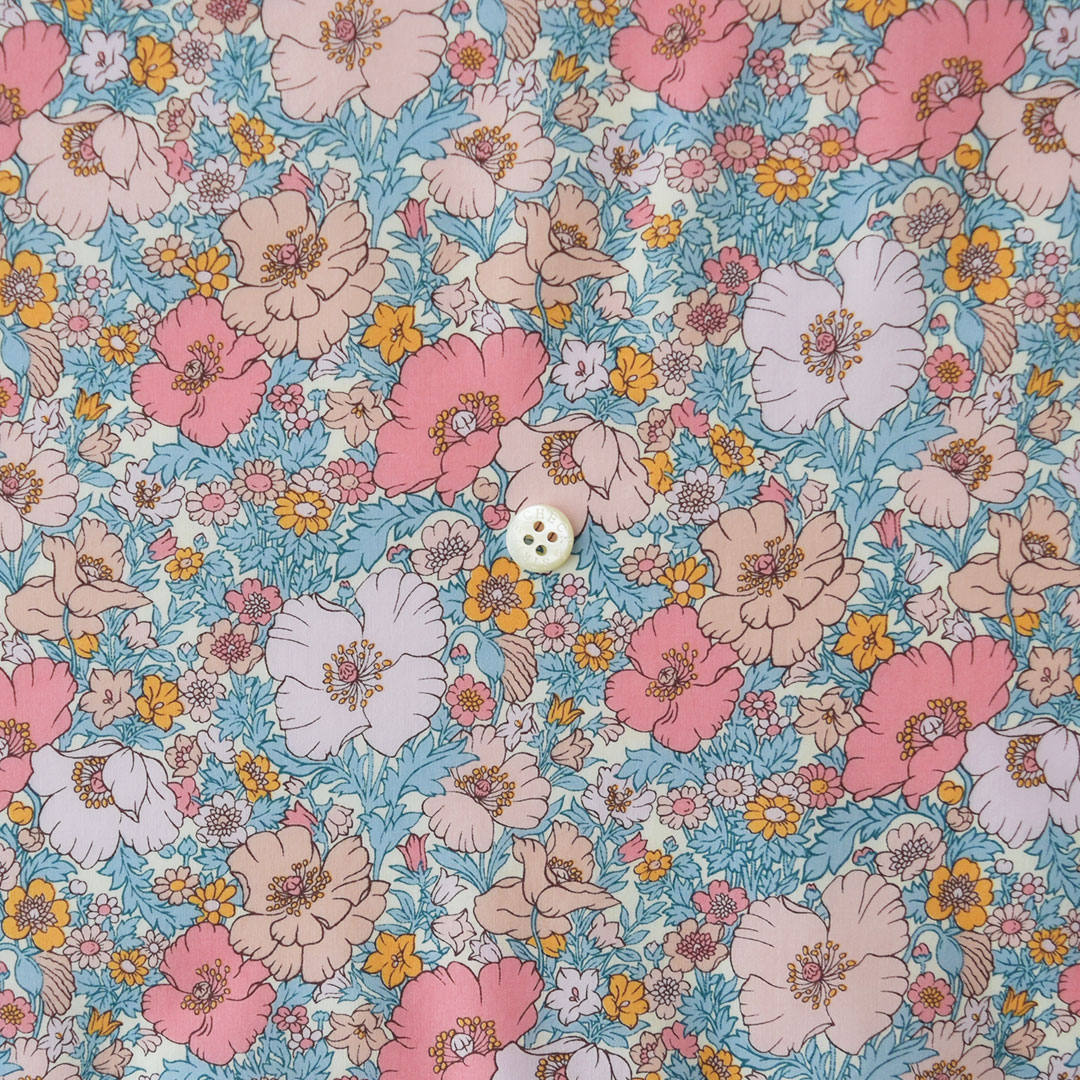 リバティが長年にわたり愛してきたポピーとデイジーへのオマージュを込めたこのデザインは、60年代のロックのレジェンド達が着用していたシャツを彷彿とさせるノスタルジックでクラシカルな花柄のムードを表現しています。アパレルブランドでも採用されている、可憐で落ち着きのある柄です。