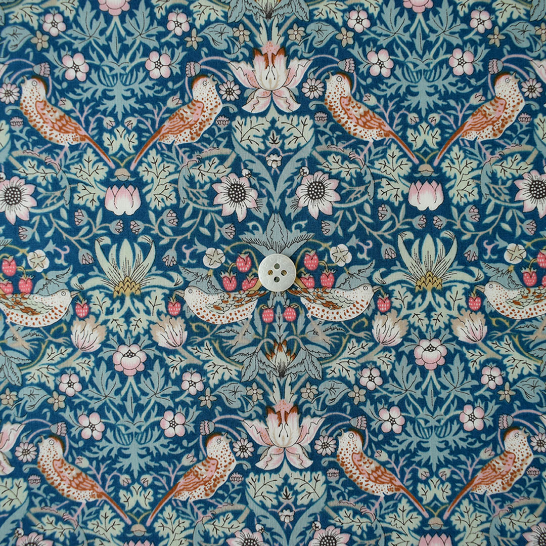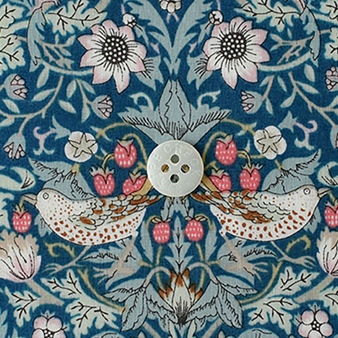 英国の思想家、詩人、デザイナー、作家、画家でデザイン史上に多大なる影響を与えた、ウィリアム・モリス。イチゴ泥棒という名前のこのデザインは、モリス自身がイチゴを育てようとしたときに、鳥に食べられてしまった経験からインスピレーションを得て1883年に制作されました。1979年、リバティ社が調度品のファブリックとしてプリントし、その後タナローン用に柄を縮小しデザインを調整。1995年リバティ社のクラシックコレクションに加入した以降、今でも不動の人気を誇っています。 -
