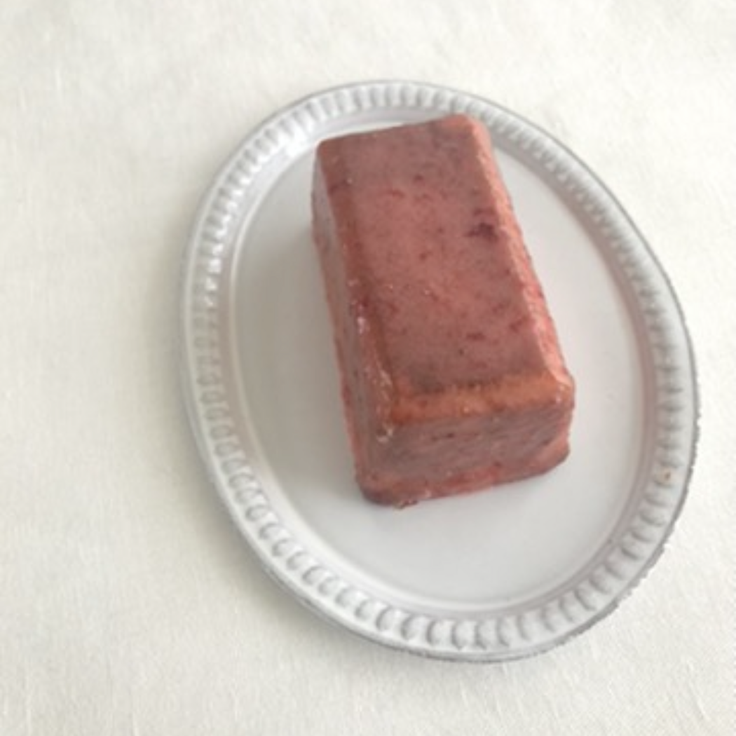 自家製苺のセミドライをいれてしっとり焼きあげたバターケーキです。苺のグラスアローで甘酸っぱく仕上げます。