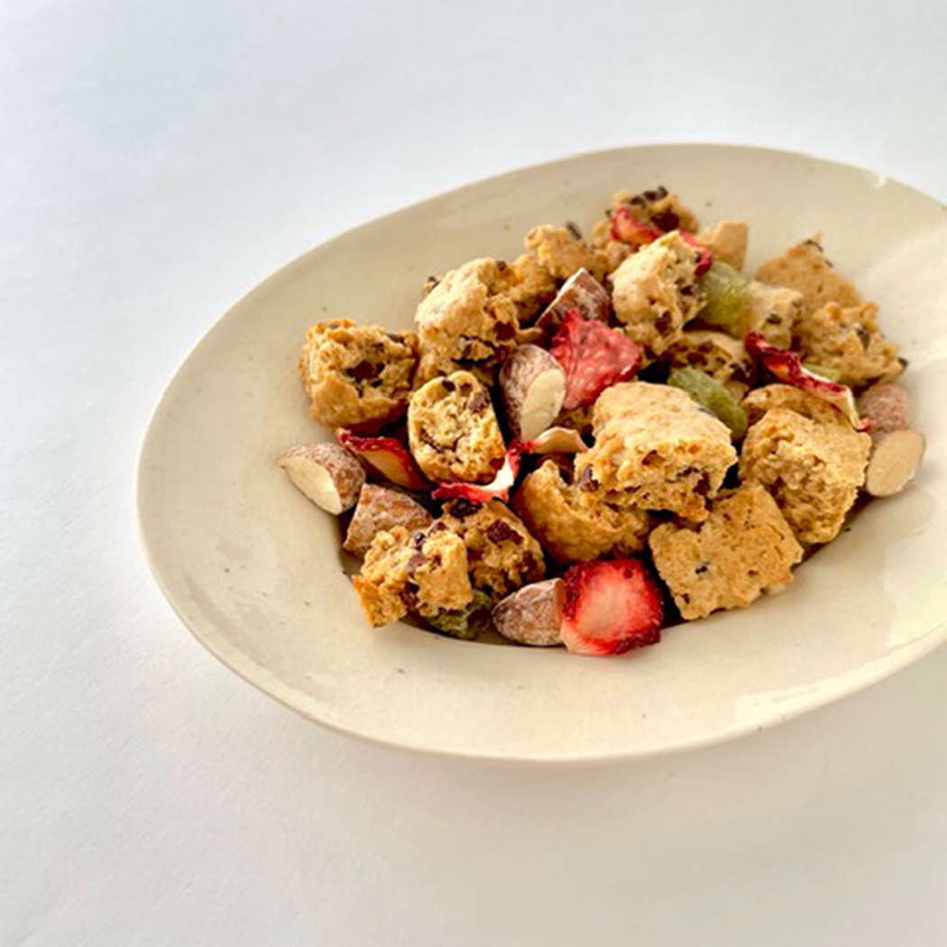 ・グラノーラの袋にたまった細かなものはクッキー生地のかけらですので一緒にお召し上がりください。