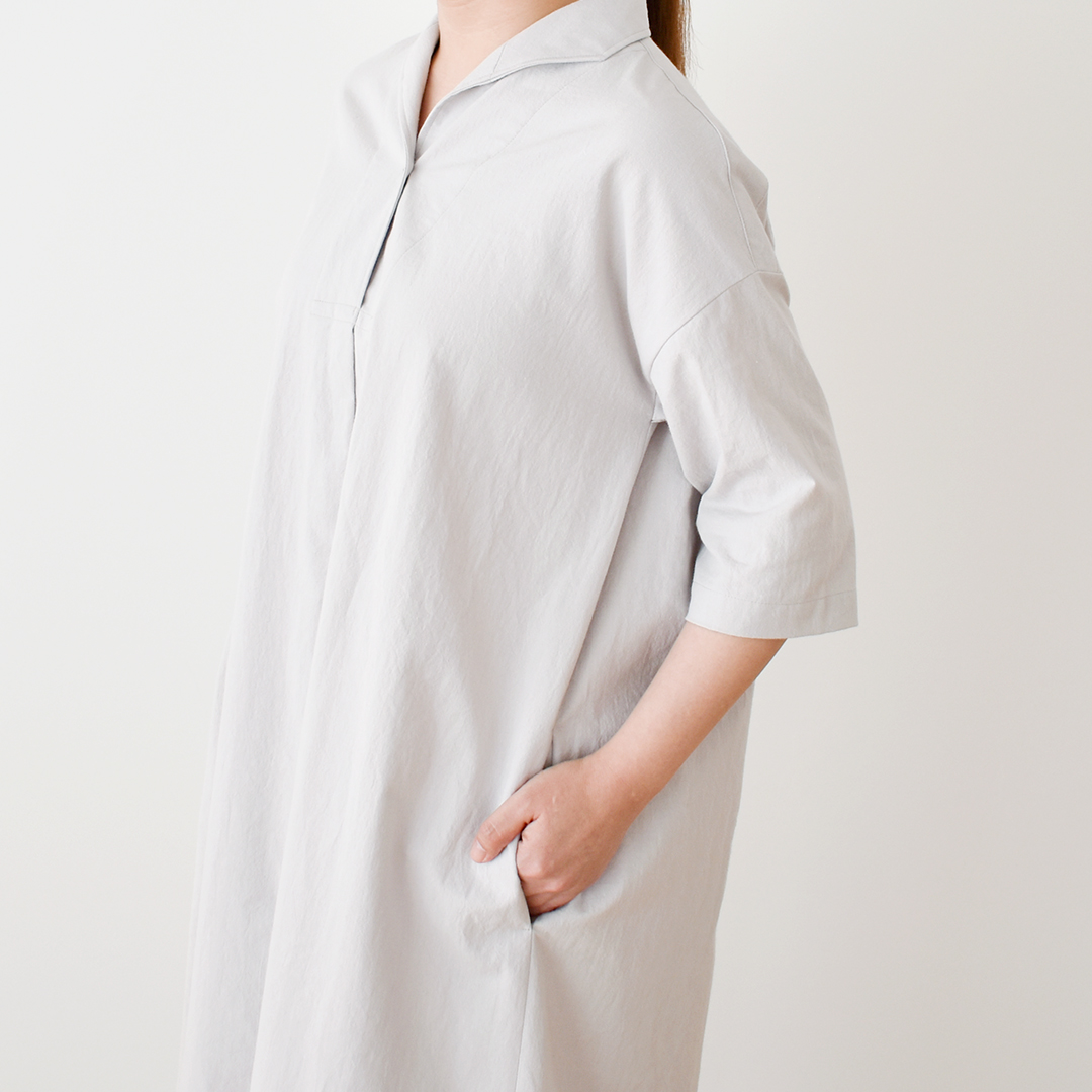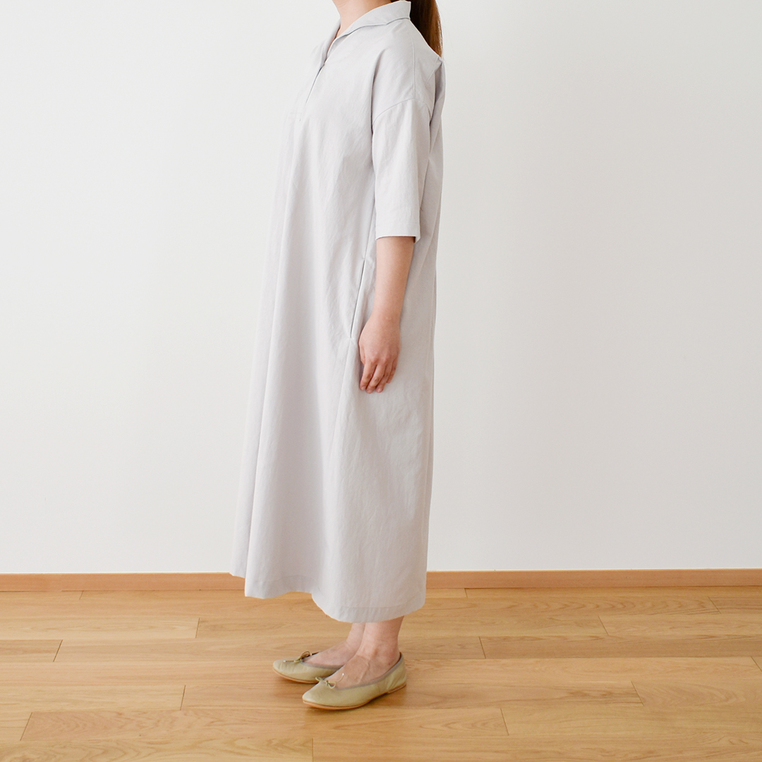 グレージュ:『CHECK&STRIPE Sewing Diary in Paris パリのソーイングダイアリ―』(世界文化社)ウィークエンドのワンピース 用尺:S3.5m、M3.6m、L3.6m