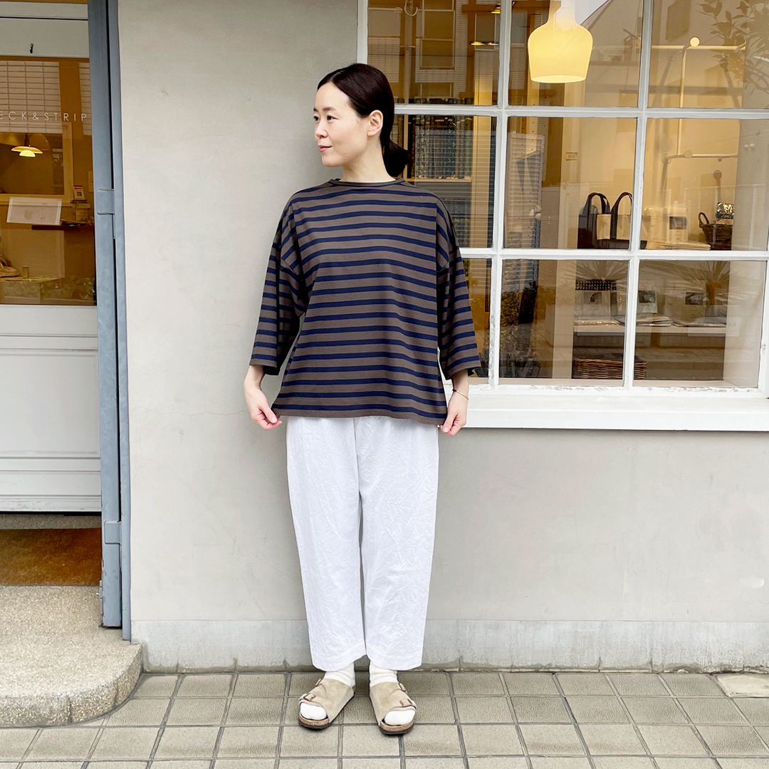 コットン100%ならではのリラックス感のあるルックスと、肌に心地よく馴染むソフトな質感が特徴です。