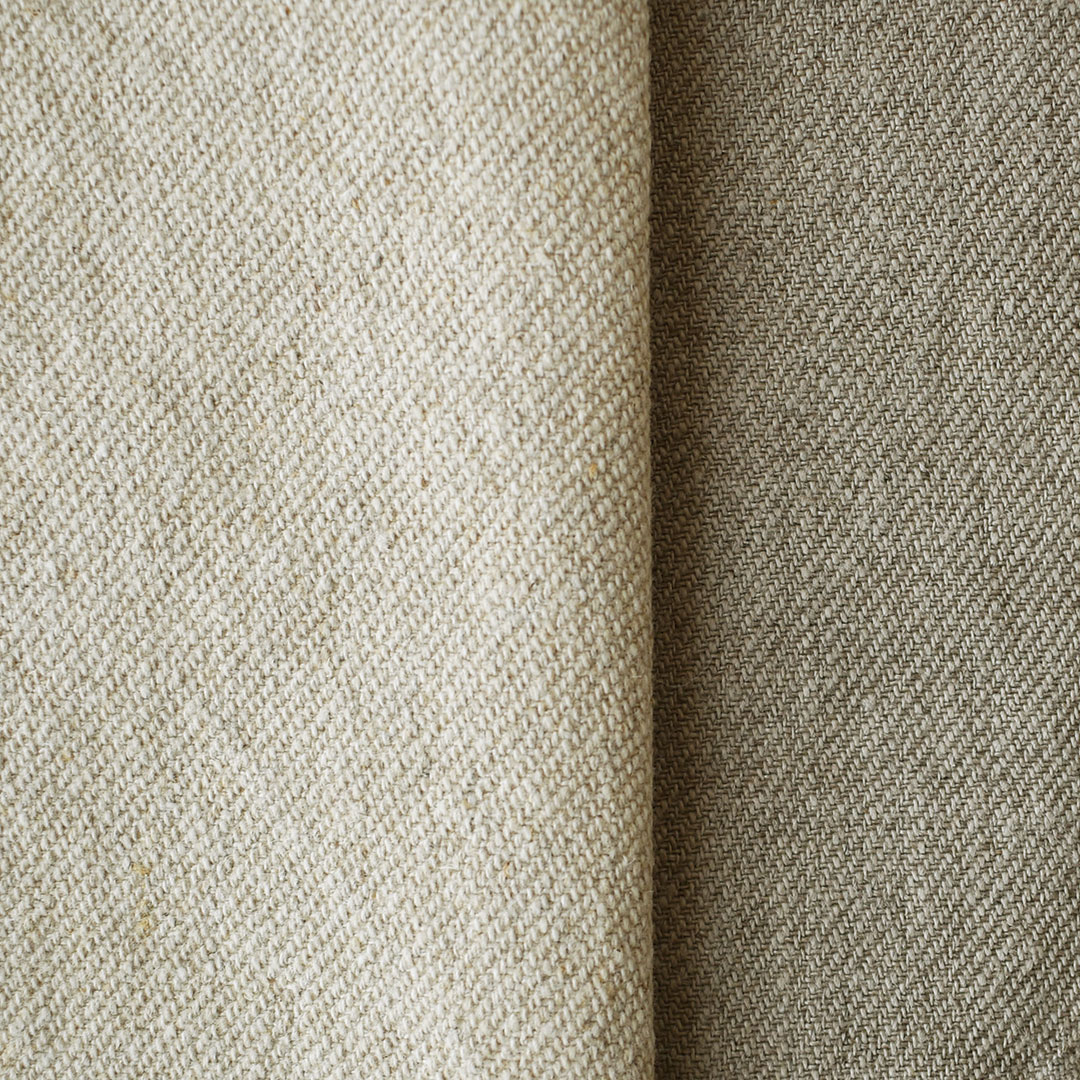 リネンの混率の高い糸を双糸にし、ツイル状に織り上げたハーフリネン。