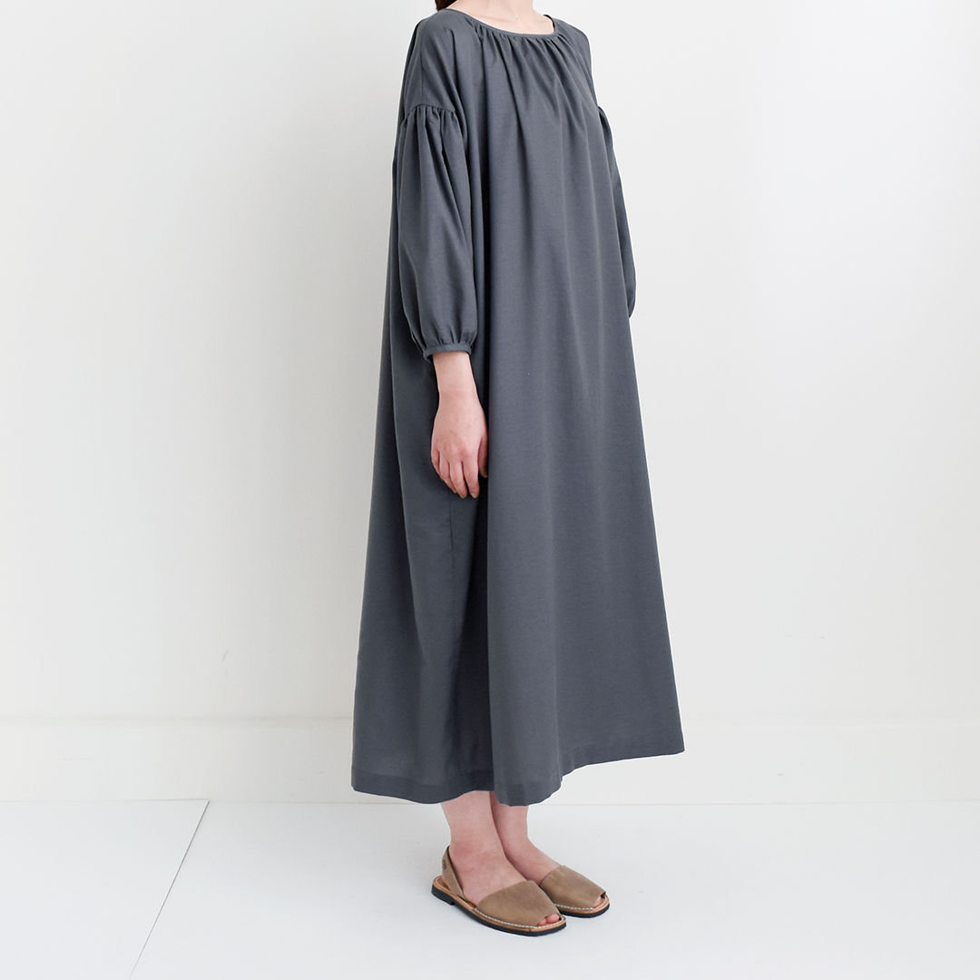 ダークグレー:『CHECK&STRIPEのおとな服 ソーイング・レメディー』(文化出版局) スタンダードギャザーワンピース