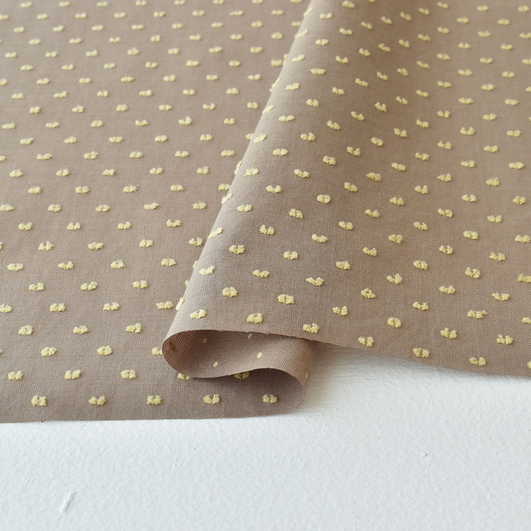 透け感のある布にカットドビーで表現された水玉がかわいい布です。