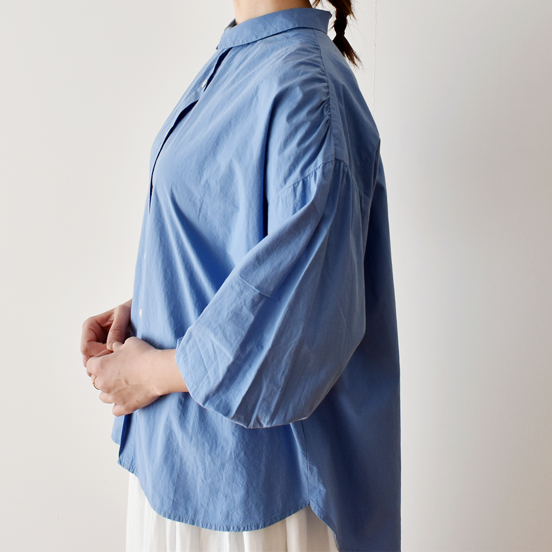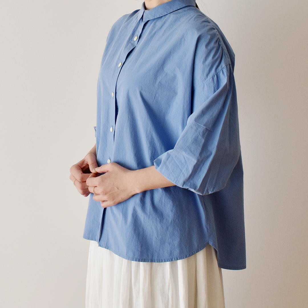 あじさいブルー:『CHECK&STRIPE Sewing Diary in Paris パリのソーイングダイアリー』(世界文化社) ふんわり袖のブラウス