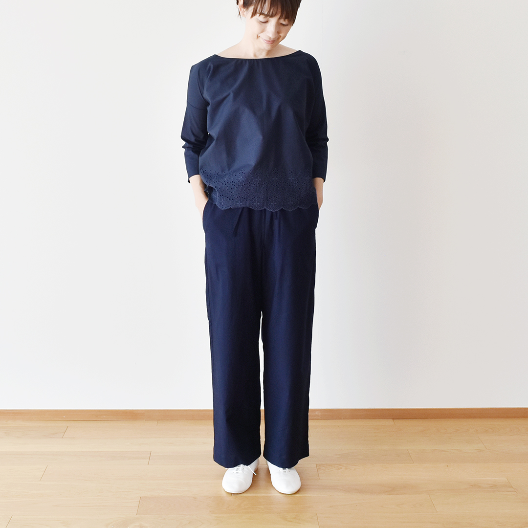 ネイビー:『CHECK&STRIPEのおとな服 ソーイング・レメディー』(文化出版局) フローラルパンツ