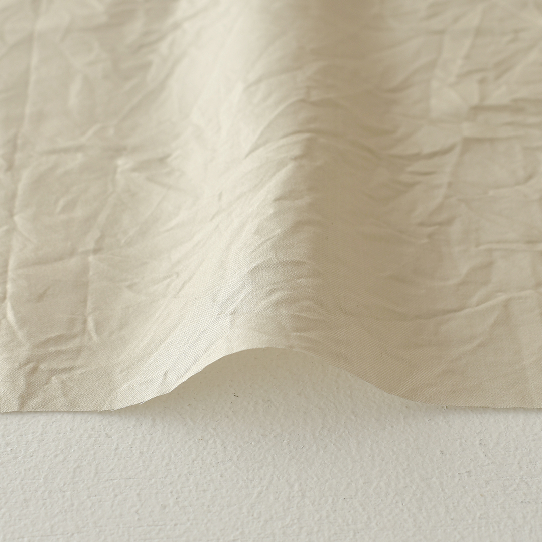 タテ糸にシルク、ヨコ糸にシルケット加工をほどこした綿糸で織られた生地で、シルク特有のナチュラルな光沢があります。シルクが31%含まれているので、吸湿性、放湿性に優れ、気持ちの良い布です。