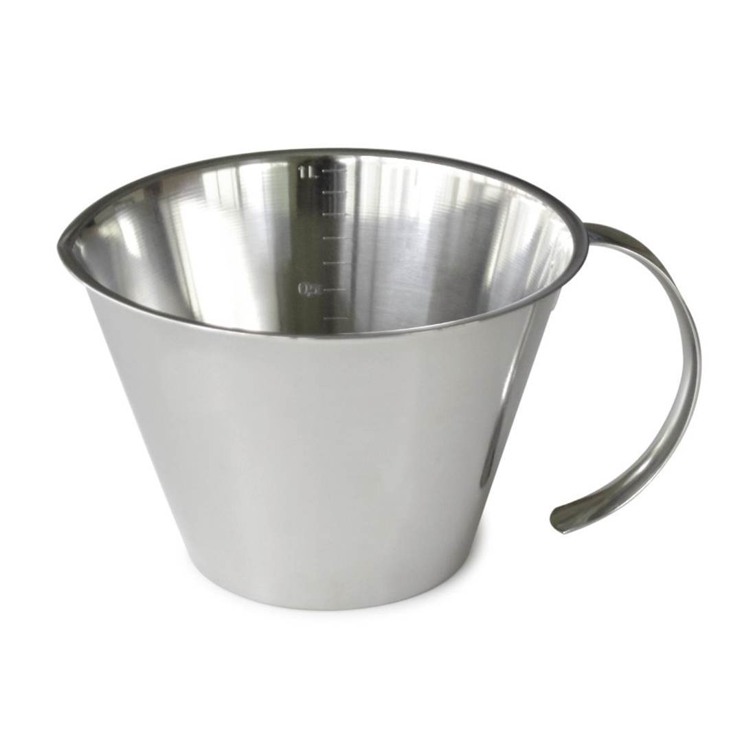 この計量カップはオープンハンドルで、持ち手付きながらスタッキングして収納することができます。ハンドルをもってかき混ぜるなどの作業もしやすく、ボウルのようにもお使いいただけます。