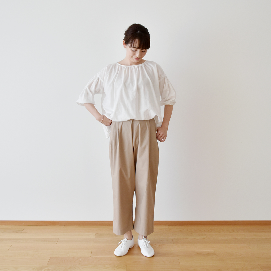 『CHECK&STRIPE Sewing Diary in Paris パリのソーイングダイアリー』(世界文化社)のワイドテーパードパンツがおつくりいただける型紙です。