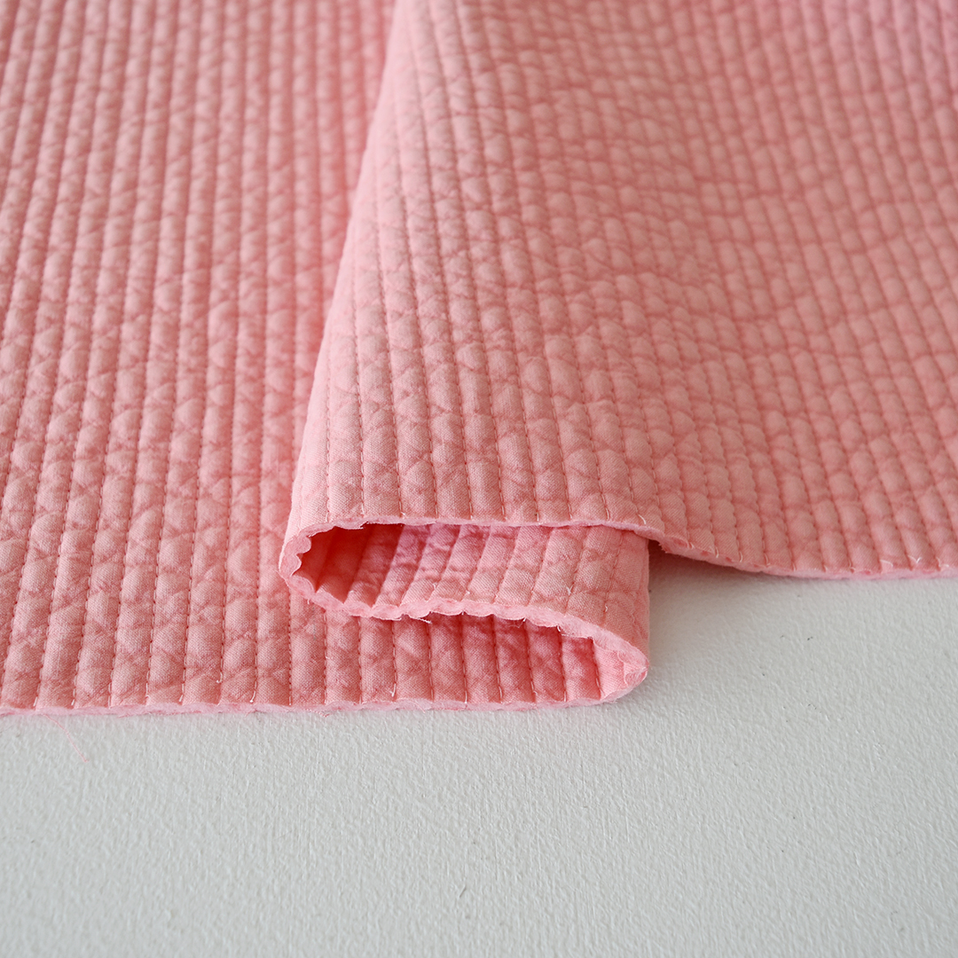 こちらの布をお買い上げのお客さまに、キルティングで作るマルシェバッグのレシピをお付けします。オンラインでは初めてご紹介するレシピです。(サンプル:ライトピンク) ※用尺:127cm幅×60cm