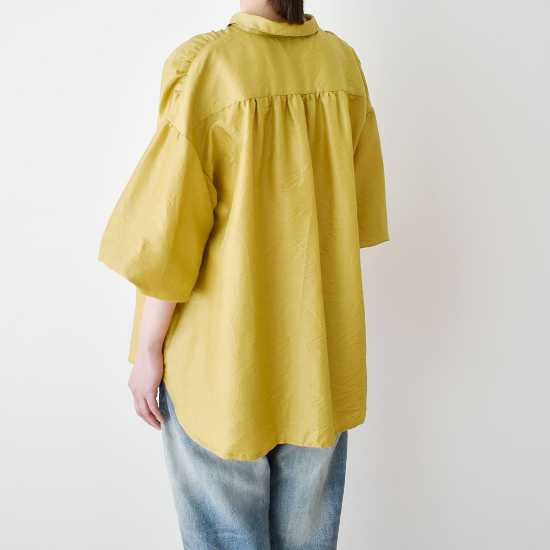 シンプルなシャツやワンピース、ギャザーの入ったブラウス、ゆったりとしたギャザーワイドパンツなどにもおすすめです。