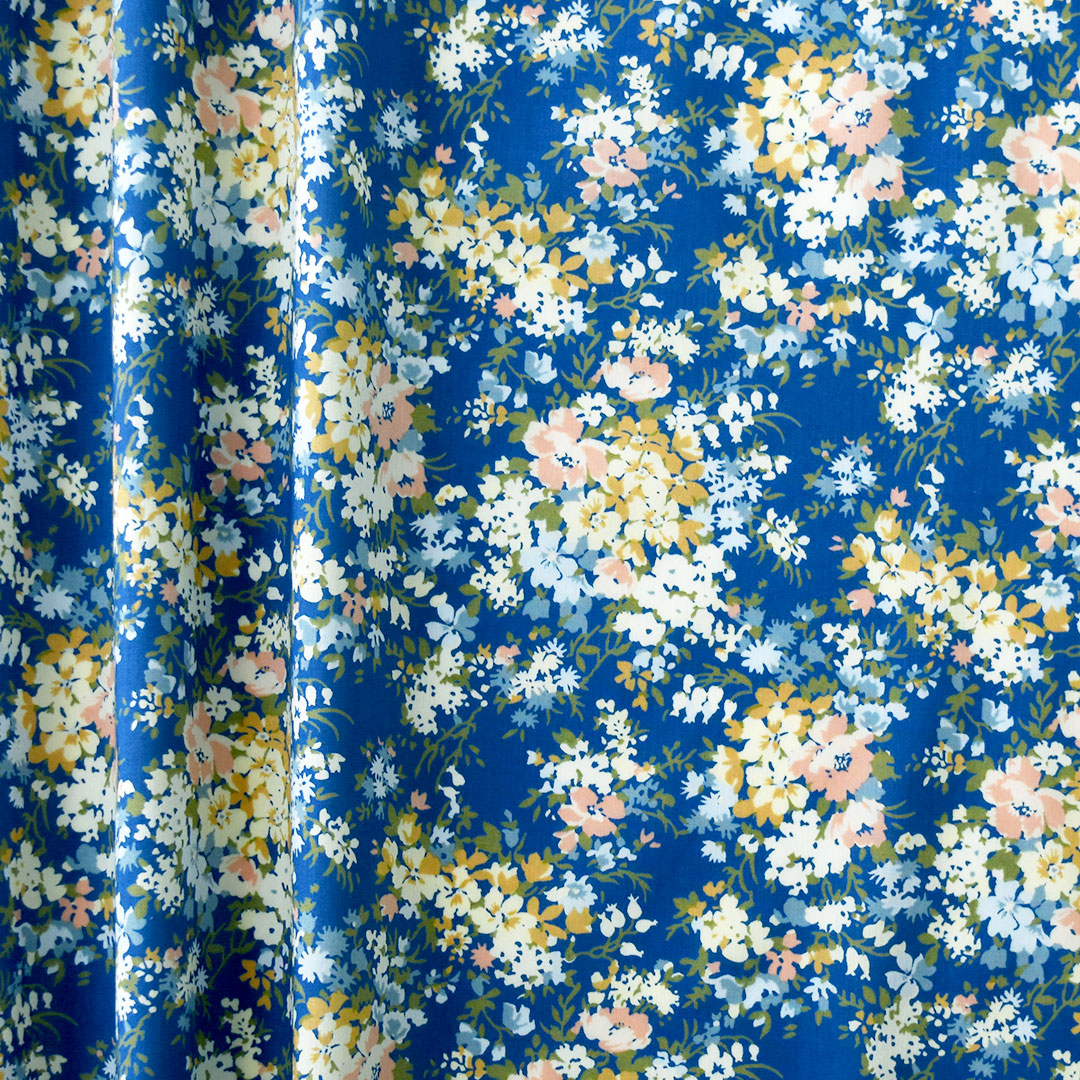 濃い地色の中に美しい花々がくっきり浮かび上がる華やかな柄です。
