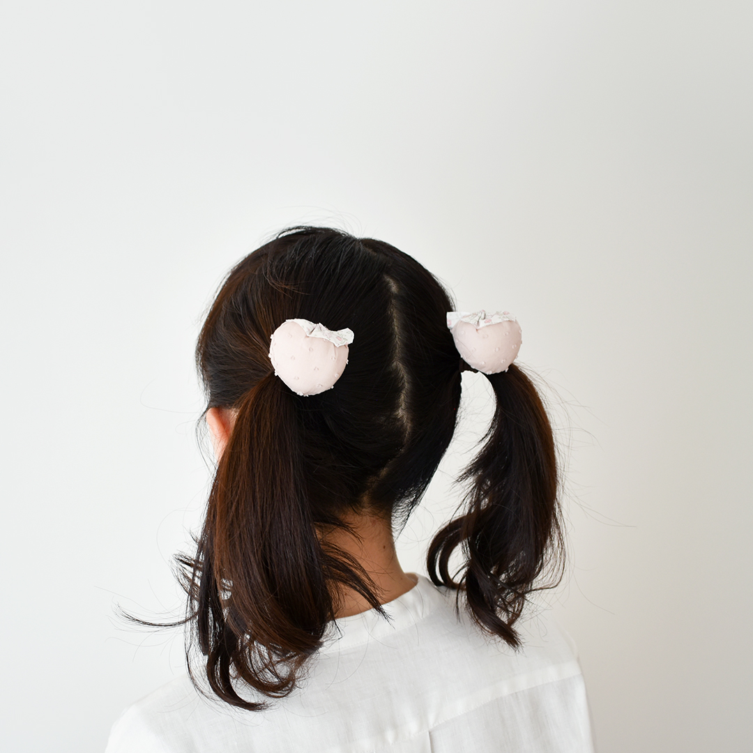 いちごのヘアゴムが4つ作れるキットです。手縫いでもお作りいただけます。存在感のある大きめないちごが、コロンとしてとても可愛らしいです。