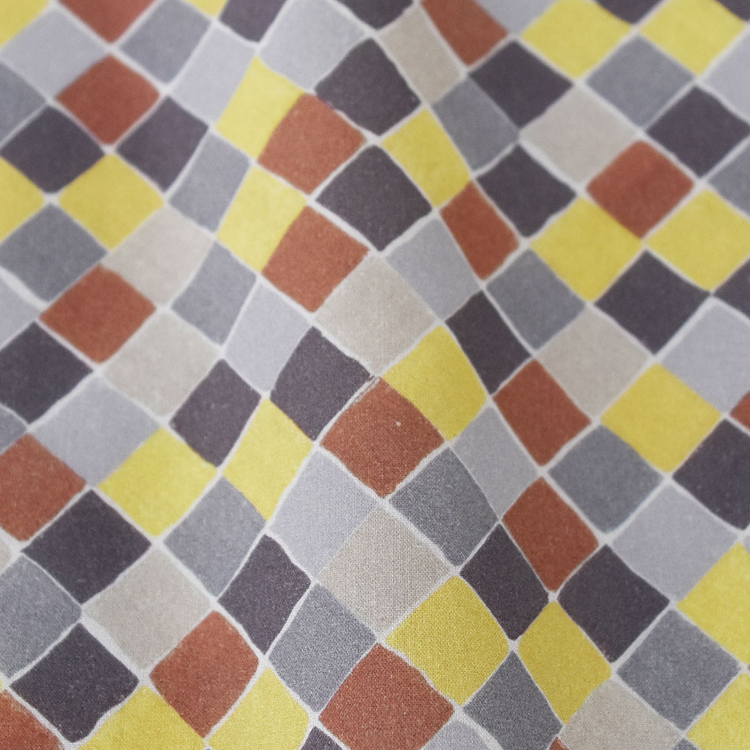 正方形を斜めに配置した幾何学的なチェックプリントの「パラッツォ」は、元々は1970cm代後半にプリントされました。